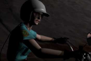 Cybil on her motorcycle